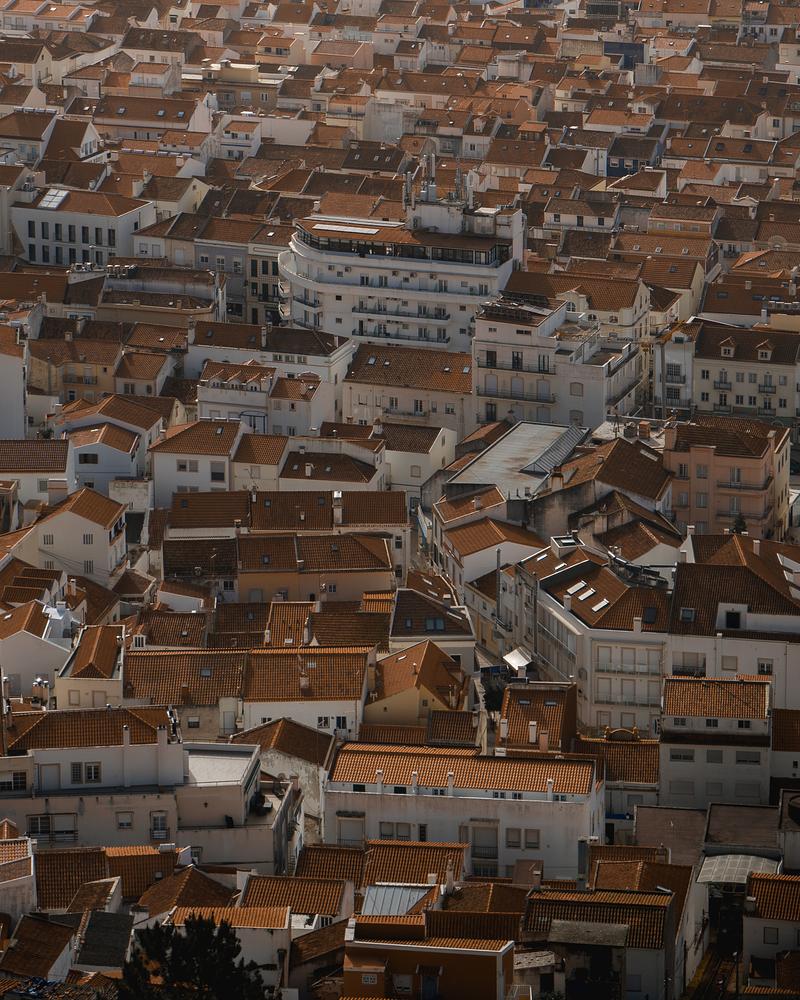 Birds view on Nazaré. Small town on one side, surf spot that breaks world records on the other side. February '23